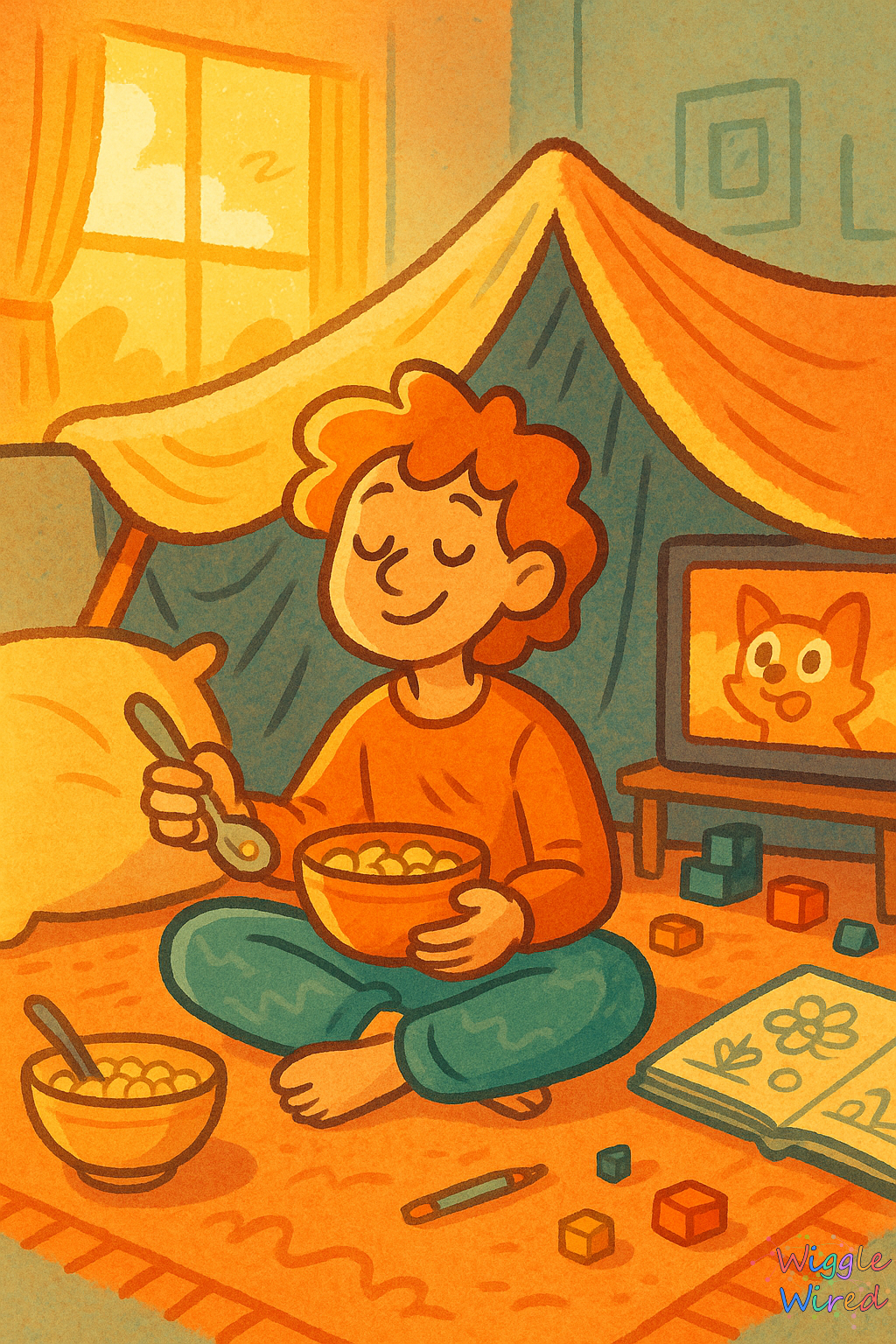 For neurodivergent families, that shift can feel especially important. Weekdays demand so much masking, juggling, and pushing through. Saturday morning is the exhale. It’s the pajama time that stretches too long, the half-finished blanket forts, the cartoons humming in the background, the coffee that actually gets to be sipped hot.